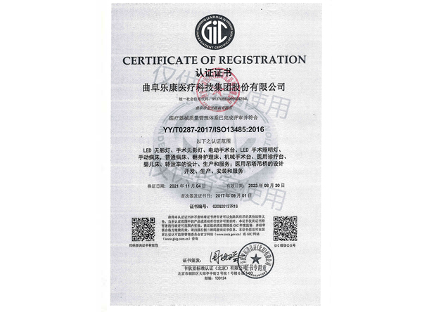 • 醫療器械注冊證-LED無影燈 醫療器械注冊證-LED無影燈